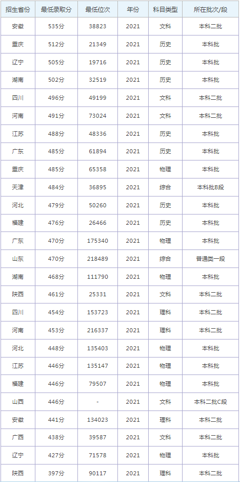 想要報考鄭州財經學院的同學,都比較關注鄭州財經學院2022年的錄取分數線,那么,高考多少分可以上鄭州財經學院呢?鄭州財經學院歷年最低錄取分數 線是多少?下面為大家整理了鄭州財經學院錄取分數線2022是多少分(含2021-2022歷年),希望對大家有所幫助,僅供參考。![]() 鄭州財經學院錄取分數線2022是多少分? 截止到目前,鄭州財經學院2022年錄取分數線還未公布,如果需要2022年鄭州財經學院分數線的同學,不妨參考 2021年鄭州財經學院錄取分數線和鄭州財經學院歷年錄取分數線,希望對大家有所幫助,如有不同,請以鄭州財經學院官網最新公布的信息為準。 2021鄭州財經學院錄取分數線 ![]() ![]() 鄭州財經學院是985還是211大學? 根據全國985和211大學名單可知:鄭州財經學院不是985大學,也不是211大學。 ![]() 鄭州財經學院簡介 鄭州財經學院位于河南省鄭州市,是一所經教育部批準成立的全日制民辦普通本科院校。鄭州財經學院始建于1997年,前身是鄭州經濟管理學校,歷經鄭州經貿職業學院,2014年5月更為現名。 根植中原大地,突出財經特色,打造智慧型國際化生態航空港新校區,圍繞辦學實力和服務能力“雙強”目標,努力建設“中原一流、國內知名、區域帶動、特色鮮明”的高水平應用型民辦本科高校。 通過對鄭州財經學院錄取分數線的了解,大家大概知道了高考多少分可以上鄭州財經學院,以上數據源于網絡,僅供參考,大家如果想要了解其他大學錄取 分數線、大學簡介、大學排行榜、專業選擇等內容,請點擊訪問:大學欄目。 推薦閱讀: 北京大學錄取分數線 清華大學錄取分數線 中國科學技術大學錄取分數線 復旦大學錄取分數線 南開大學錄取分數線 同濟大學錄取分數線 |